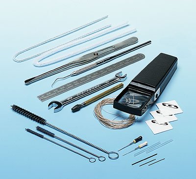 Includes lighted magnifier, tweezers, ceramic-tipped fused silica cutter, three column scribes, two universal unions, single-ended pin vise, round needle file, multipurpose microhook, 15-cm ruler, three drill bits (0.4 mm, 0.5 mm, and 0.8 mm), one 1/4"-5/16" open-ended wrench, three nylon brushes (1/8", 3/16", and 1/4"), two 1-foot lengths of pipe cleaner (1/8" and 1/4"), one 3-ft length of high-temperature string, and ten chromatogram labels. Shpg wt 1 lb (0.5 kg) Use these specially designed kits to clean the detectors and injectors of your gas chromatographs. These areas tend to build up residue and need to be cleaned for optimal results. Capillary maintenance kit helps you take care of your capillary columns.