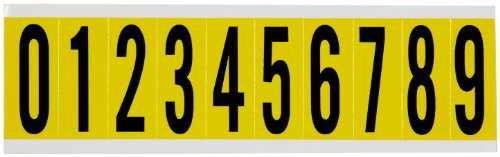 Brady 3440-KIT 2-1/4" Height, 7/8" Width, B-498 Repositionable Coated Vinyl Cloth, Black On Yellow Color, 10 Labels Per Card 34 Series Indoor Combination Pack Number Assortment "0 Thru 9" (Pack Of 25 Cards) Review